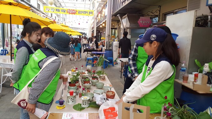 금산군 학교 밖 청소년 지원센터은 학교 밖 청소년 6명과 지난달 28일 금산시장에서 추진하는 월장에 참여해 ‘뻔뻔비즈 프로그램’을 운영했다.