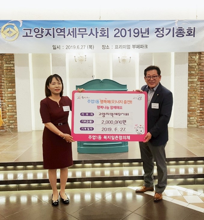 고양지역세무사회는 수년간의 정기적인 후원으로 지역사회에 나눔 문화를 형성하고 공동체 의식을 제고시킨 모범이 되는 단체로, 이날 정기총회를 맞아 주엽1동에 200만 원을 후원했다.