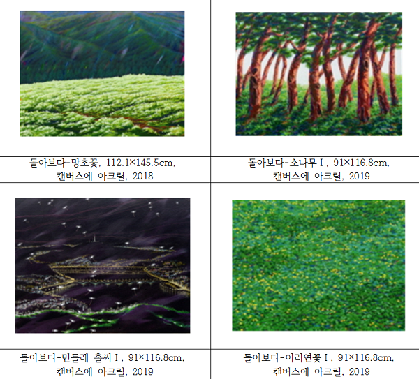 작가는 직접 민들레 홀씨가 되어 총체성으로 연결된 색채 평원의 근원을 찾아 길을 나섰다. 작품 속의 민들레 홀씨는 자율적이면서 우주의 질서를 존중하며, 자유롭지만 산만하지 않다. 생명을 나르는 고귀함이 자연스럽게 색채 평원에 스며든다. 민들레 홀씨의 길을 따라가다 보면, 생명, 총체성, 공동체, 자유, 평화, 마음의 세상을 만나게 된다. 어린 시절, 친구들과 마음껏 뛰어놀던 자운영 꽃밭의 향기가 피어오르고, 파편화되고 찢겨진 영혼이 치유되는 경험을 하게 된다. 민들레 홀씨라는 우주선에 탑승해 지구 밖 우주 공간에서 지구를 바라보는 느낌도 난다. 우리가 잊고 사는 세상이자 우리의 근원이면서도 찾지 않는 곳, 아름답고 생명 가득한 지구의 모습이 보인다.