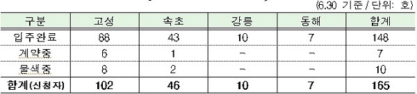 지난 4월 발생한 강원도 산불 이재민에 대한 긴급 주거지원으로 공공임대주택을 신청한 165세대의 94%인 155세대가 입주를 완료하였거나 조만간 입주할 예정이다.