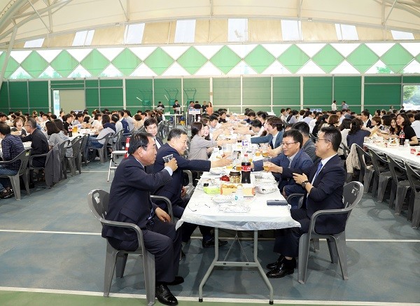 업무시간을 마치고 퇴근 후 치러진 이날 행사에서 김준성 영광군수는 직원들이 앉아있는 자리를 일일이 찾아다니며 큰 행사를 치르면서도 맡은 바 임무에 최선을 다해준 직원들을 격려하고 애로사항을 청취했다.