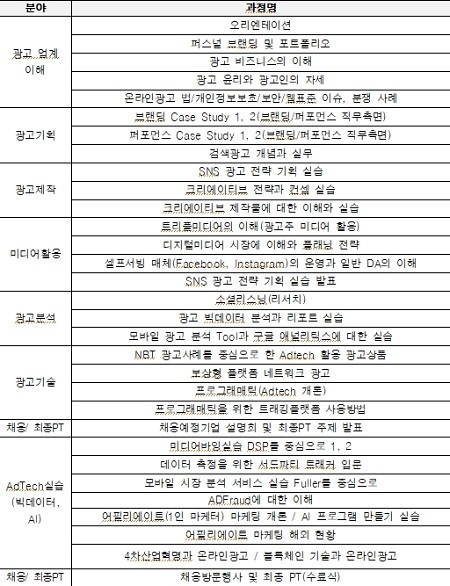 2019년도 온라인광고 채용연계형 집중과정 세부내용
