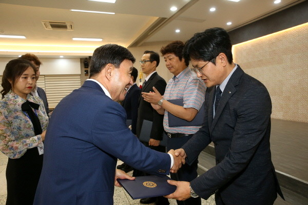 시상식은 1일 시의 정례조회에서 진행됐다. 시는 현장 중심 규제개선 아이디어 발굴을 위해 지난 2~3월 시민을 대상으로 ‘일자리 늘리GO 기업 살리GO 체감도 올리GO’ 공모전을 개최해 총 80건을 접수했다.