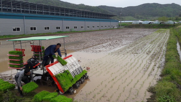 하남읍 남전리 소재 벼 재배농가가 논에 모내기를 실시하고 있다.