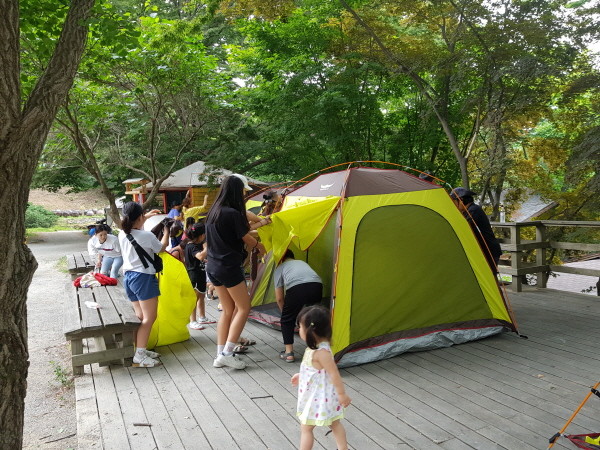 이번 캠프는 참여가족 간의 친밀감을 형성하는‘우리는 하나’아이스브레이킹부터 조별 텐트치기, 아쿠아타임, BBQ파티, 캠프파이어, 가죽공방체험-나만의 카드지갑 만들기 등 일상생활에서 벗어나 친자연적 환경 속에서 협동 중심의 캠핑체험 및 공동체 활동으로 진행됐다.