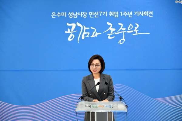 은수미 성남시장은 민선7기 취임 1주년을 맞아 1일 한누리실에서 기자회견을 열고 복지, 일자리, 문화, 지역경제 등 시책 추진 상황과 앞으로의 계획을 발표했다.