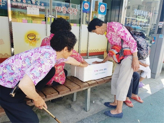 지역자율방재단의 폭염 캠페인은 연간 사업계획 중 중점 활동으로, 장날 시장 상인과 장보러 오는 시민들에게 매회 1,000병의 얼음생수를 폭염 국민행동요령 리플릿과 함께 전달해, 폭염으로부터 안전한 지역사회를 만드는데 기여가 큰 활동이다.