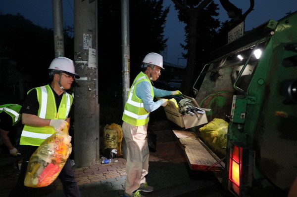 김경원 부군수와 건설도시국장, 농업기술센터소장은 2호 청소차량에 올라 경찰서∼광평∼남당~시장 외곽지역으로 이어지는 6㎞ 구간에서 역시 종량제 봉투를 수거했다.