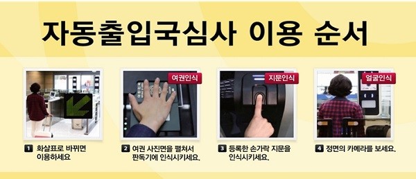 이용 가능 대상은 국내 입국 시 얼굴과 지문정보를 제공한 17세 이상 단기방문 외국인으로 주요 공항만으로 출국할 때 곧바로 자동심사대를 이용할 수 있어 빠르고 편하게 출국할 수 있게 됐다.