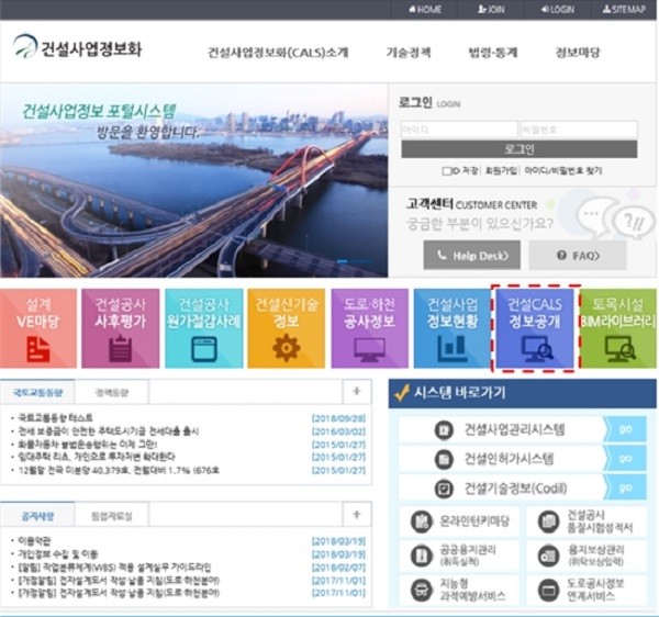 건설사업정보 시스템에 접속하면 누구나 관련 콘텐츠를 쉽고 편리하게 이용할 수 있다.