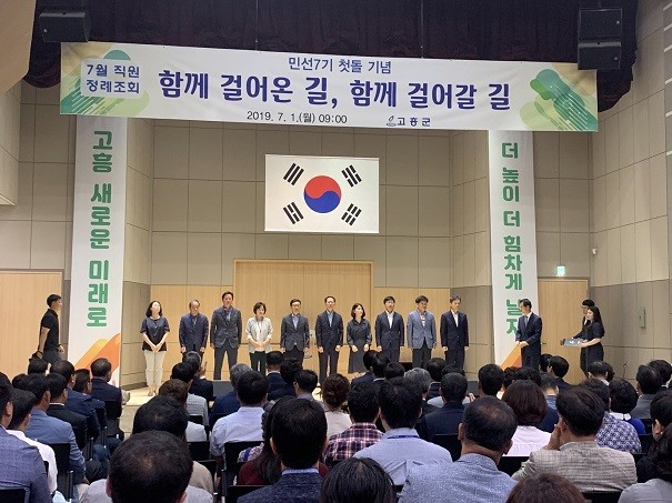 고흥군은 1일 정례조회에서 지난 1분기에 이어 2분기에도 친절직원 4명과 상반기 전화친절도 평가 우수부서에 대해 시상을 했다.