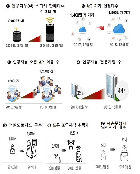 인공지능스피커 400만대, 세계 최초의 5G 가입자 100만명 돌파,인공지능 프로그램 이용수 7배 상승, 스마트 공장 7,903개 구축