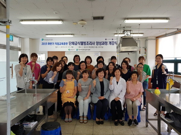 경산여성새로일하기센터는 1일 오전 11시 경산시 여성회관 4층 2조리실에서 2019년 하반기 직업교육훈련 단체급식웰빙조리사 양성과정 개강식을 개최했다.