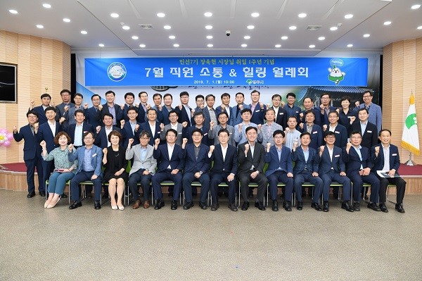 장욱현 시장은 월례회를 통해 시정 주요사업 추진 현황과 성과를 점검하고 향후 계획과 비전에 대해 이야기를 나눴다. 또한 직원들의 노고를 격려하고 맡은 바 임무에 최선을 다해 줄 것을 당부했다.
