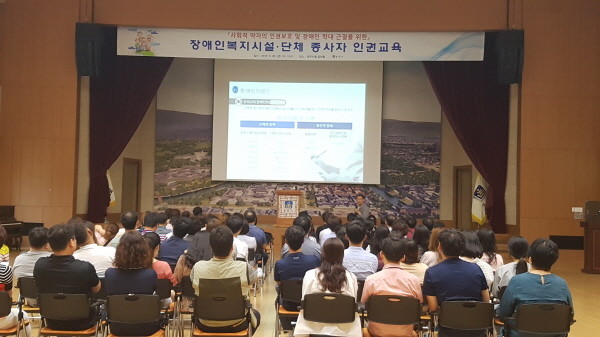 경주시는 지난달 27일과 28일 이틀 동안 2시간씩 장애인 복지시설 및 장애인 단체 종사자 180여 명을 대상으로 사회적 약자의 인권보호와 장애인 학대 근절을 위한 인권교육을 실시했다.