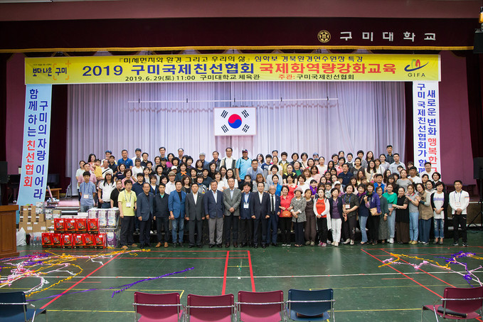 구미국제친선협회는 지난 6월 29일 구미대학교 체육관에서 장세용 구미시장, 김봉교 경상북도의회 부의장, 정재화 전 구미국제친선협회 회장 등 내빈들과 회원 200여명, 관내 외국인 80여명이 참석한 가운데 ‘2019 구미국제친선협회 국제화 역량강화교육’을 실시했다.