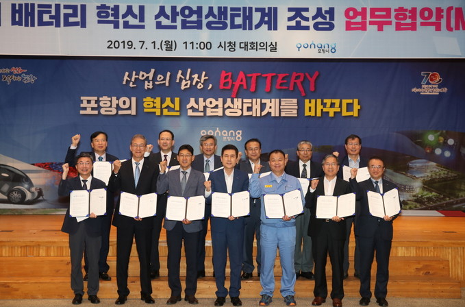 포항시는 1일, 시청 대회의실에서 지역의 산·학·연·관이 참석한 가운데 철강산업 일변도의 산업체질을 개선하고, 배터리 산업의 경쟁력을 높이기 위해 ‘차세대 배터리 혁신산업 생태계 조성을 위한 업무협약'을 체결했다.