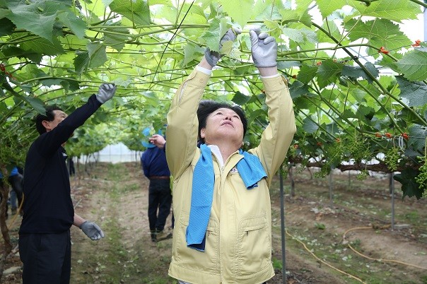 지난 6월 14일 우선 군민의 부름에 답했다. 대장리 김지웅씨의 포도 농장을 방문해 농장운영의 애로사항을 듣고 함께 고민함은 물론, 같이 땀 흘리며 농촌의 부족한 일손에 힘을 보태었다.