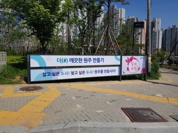 원주시는 불법 현수막 근절 및 올바른 광고문화 정착을 위해 지난달 말 공공용 6개소 및 상업용 3개소 등 총 9개소의 저단형 현수막 지정게시대 설치를 완료했다.