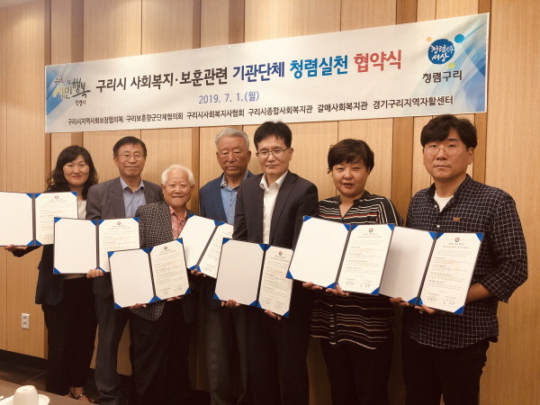 구리시는 지난 1일 복지정책과 주관으로 구리시 사회복지 관련 6개 기관 및 단체와 함께 구리시의 깨끗하고 청렴한 사회복지 실천을 위한 협약을 체결했다.