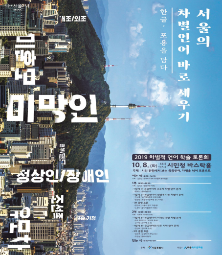 서울시는 오는 8~9일 시민청에서 차별적 언어를 다루는 학술토론회와 시민발표대회를 개최한다고 7일 밝혔다.