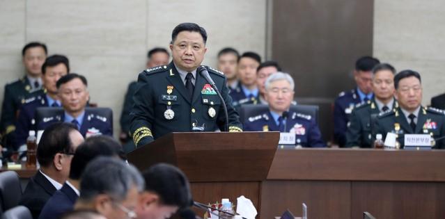 ▲8일 오전 서울 용산 합동참모본부에서 열린 국회 국방위원회 합동참모본부 등에 대한 국정감사에서 박한기 합동참모본부 의장이 업무보고를 하고 있다. [뉴시스]