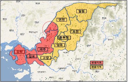 고양·포천·양주·동두천·철원·연천군 발생 농가 반경 10㎞ 밖