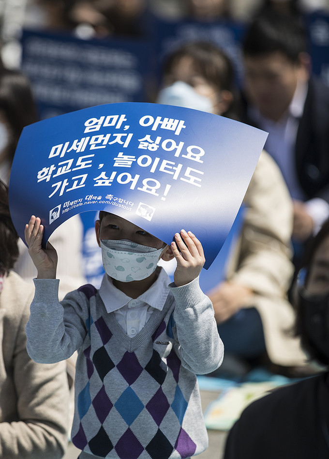 ▲ 서울시가 미세먼지 대책을 추진하면서도 공용 노후 경유차를 민간에 매각했다는 주장이 14일 나왔다. 사진은 지난 4월 15일 오후 서울 종로구 광화문광장에서 '제8회 미세먼지 대책 촉구 집회'를 열고 정부의 미세먼지 대책을 촉구하는 피켓을 들고 있는 '미세먼지대책을촉구합니다(미대촉)' 회원들. [정병혁 기자]