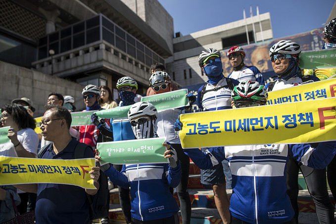 ▲ 사진은 지난달 18일 오전 서울 종로구 세종문화회관 계단 앞에서 미세먼지 대책촉구 기자회견을 열고 정부가 강력한 미세먼지 시즌제를 시행할 것을 촉구하는 '미세먼지줄이기나부터시민행동' 회원 및 관계자들. [정병혁 기자]