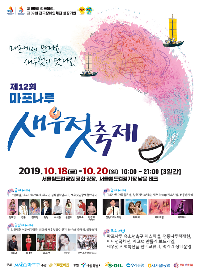 마포구(구청장 유동균)는 오는 18일부터 20일까지 3일간 '제12회 마포나루 새우젓축제'가 서울월드컵공원 평화의 광장, 서울월드컵경기장 남문데크 일대에서 열린다고 15일 밝혔다.