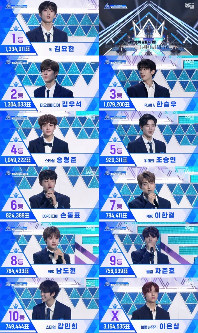 ▲지난 7월 19일 방송된 엠넷 '프로듀스 X 101'에서 데뷔조로 선발된 11인의 모습. [엠넷 '프로듀스 X 101' 캡처]