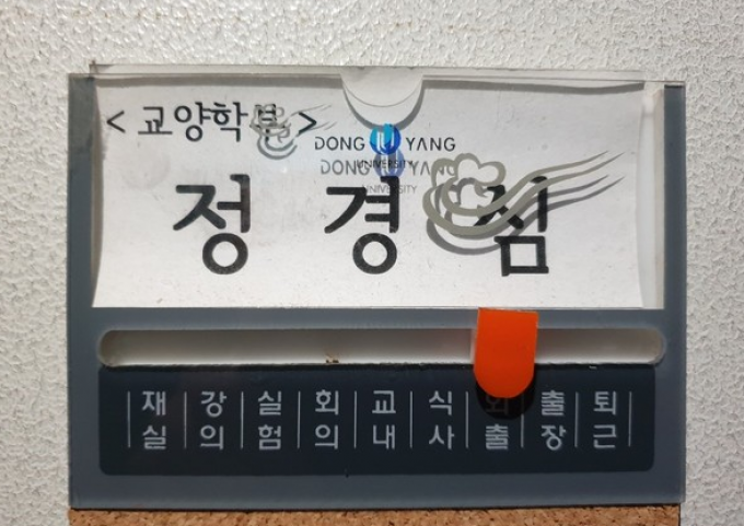 ▲외출중임을 알리는 동양대 정경심 교수 연구실. [뉴시스]