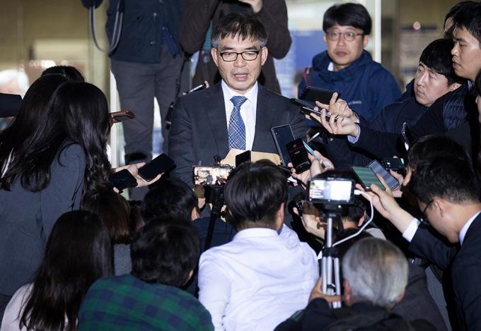 ▲ 정경심 동양대 교수의 변호를 맡은 김칠준 변호사가 23일 오후 서울 서초구 서울중앙지방법원에서 열린 정 교수의 구속 전 피의자 심문(영장실질심사)이 끝난 뒤 법원 밖에서 취재진의 질문에 답하고 있다. [정병혁 기자]