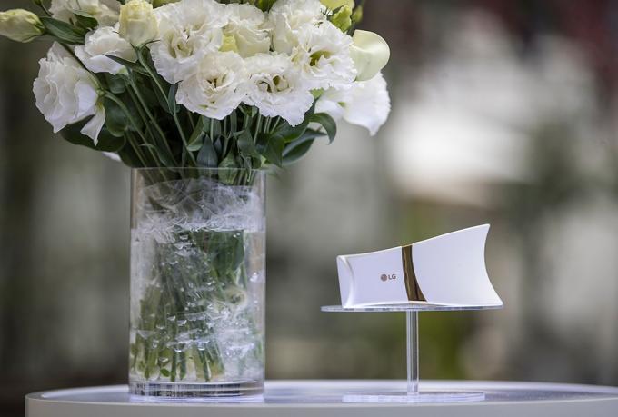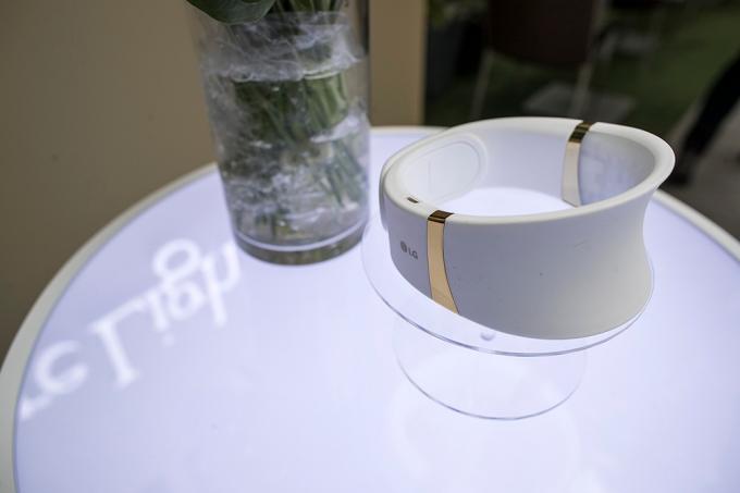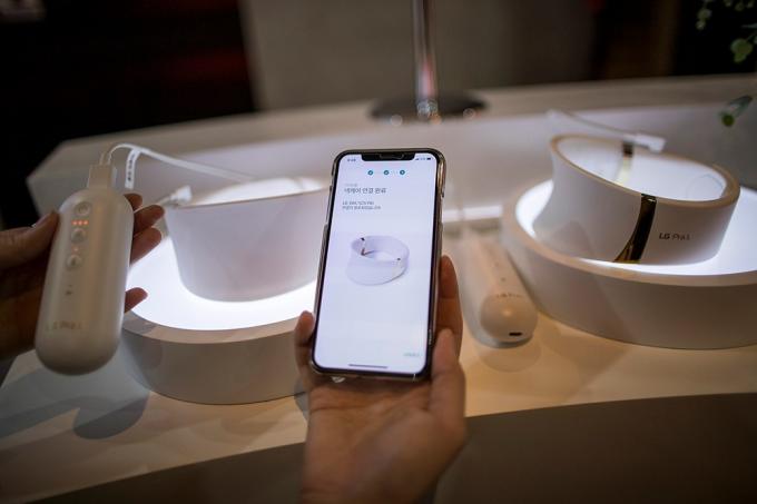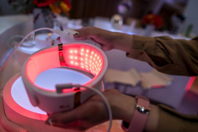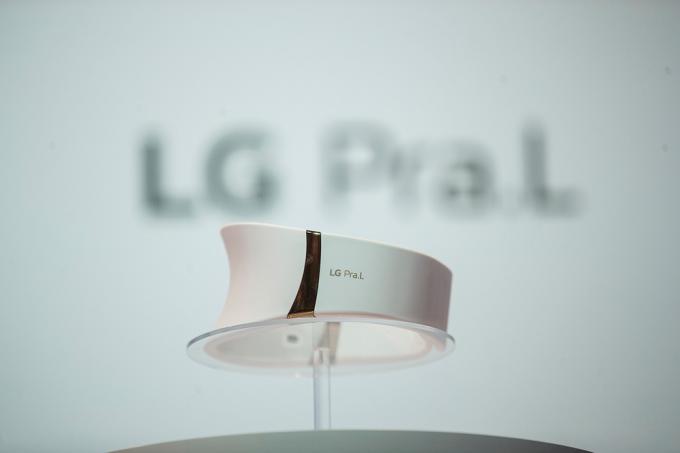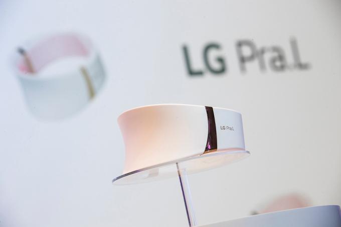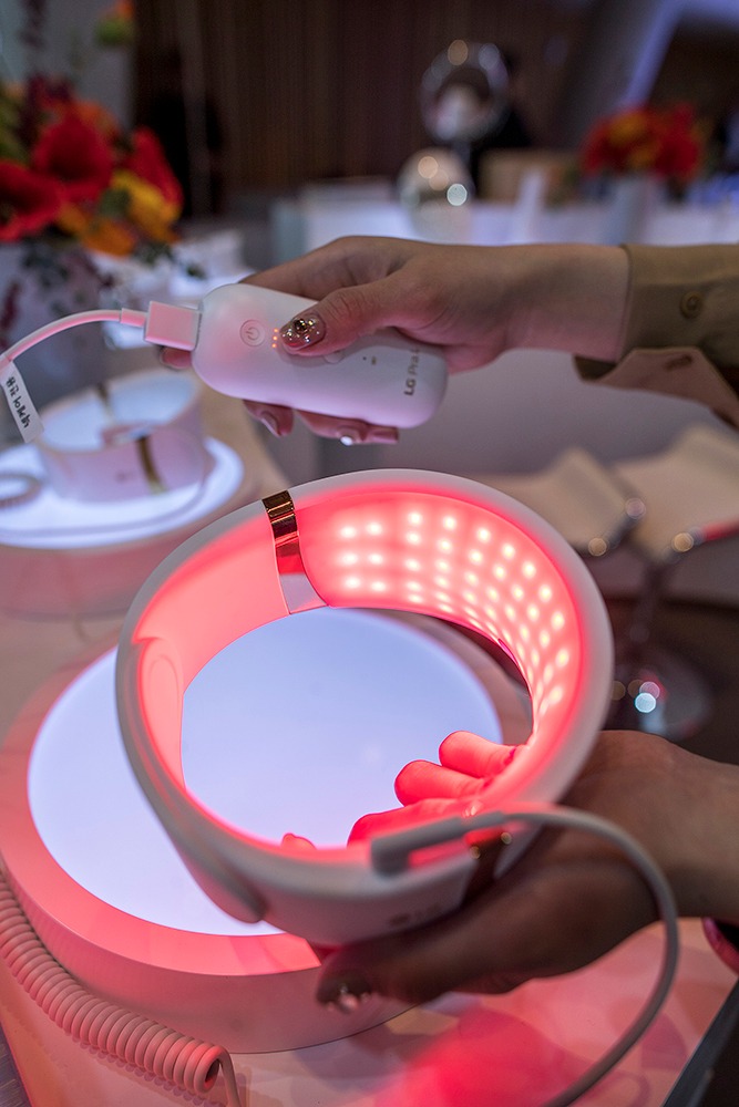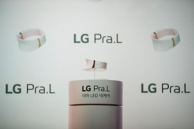 24일 오전 서울 강남구 송은아트스페이스에서 열린 LG 전자 프라엘 '더마 LED 넥케어-코어 라이트' 론칭 행사에서 '더마 LED 넥케어' 제품이 전시되어 있다.