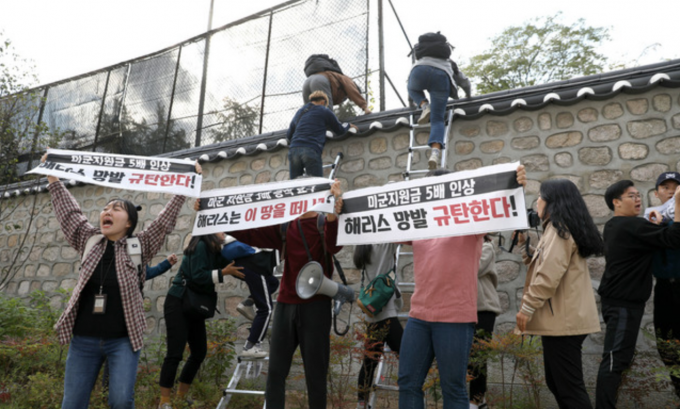 이들은 지난 18일 오후 2시 50분께 사다리를 타고 서울 중구 정동 미대사관저의 담을 넘어 마당에 진입한 뒤 "방위비 분담금 인상에 반대한다"고 외치며 시위를 한 혐의를 받고 있다.