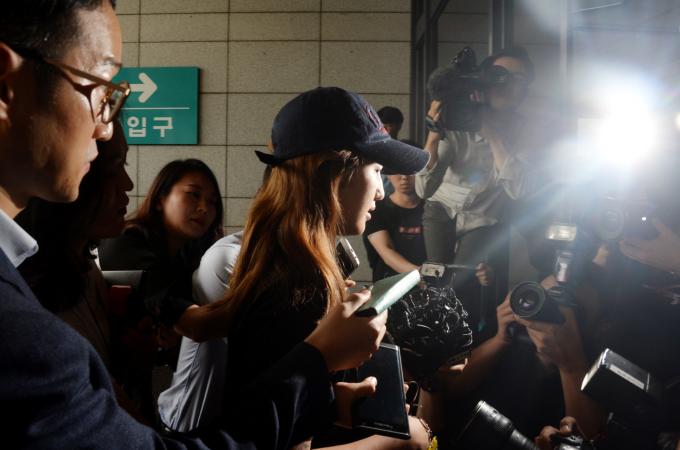 ▲ '비선실세' 최순실 씨의 딸 정유라 씨가 2017년 7월 3일 오후 서울 서초구 서울중앙지방검찰청으로 소환되는 모습. [뉴시스]