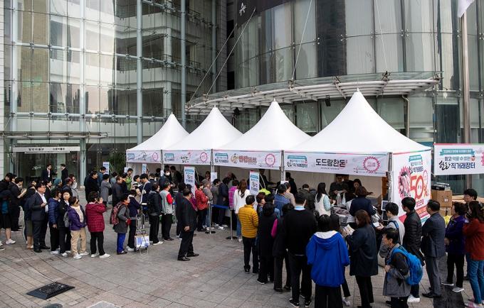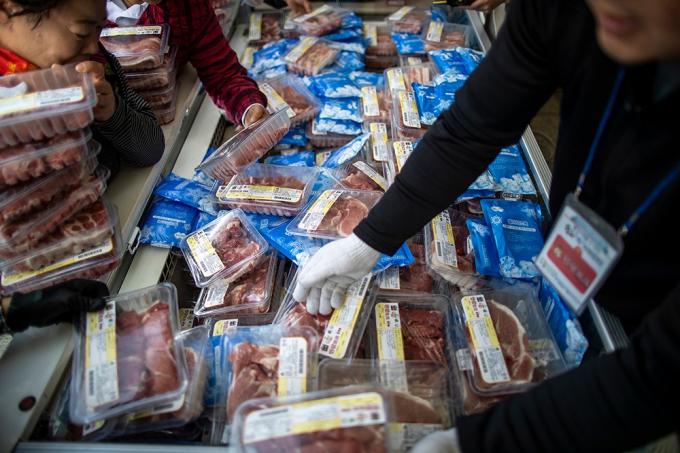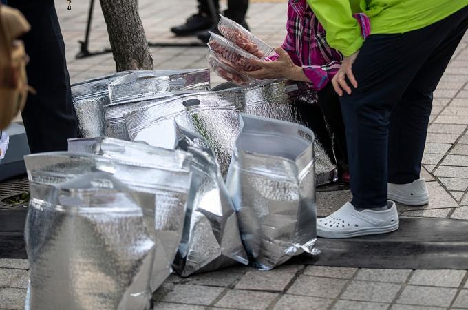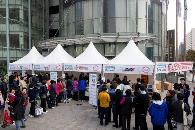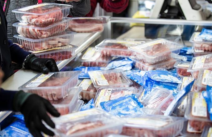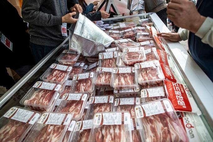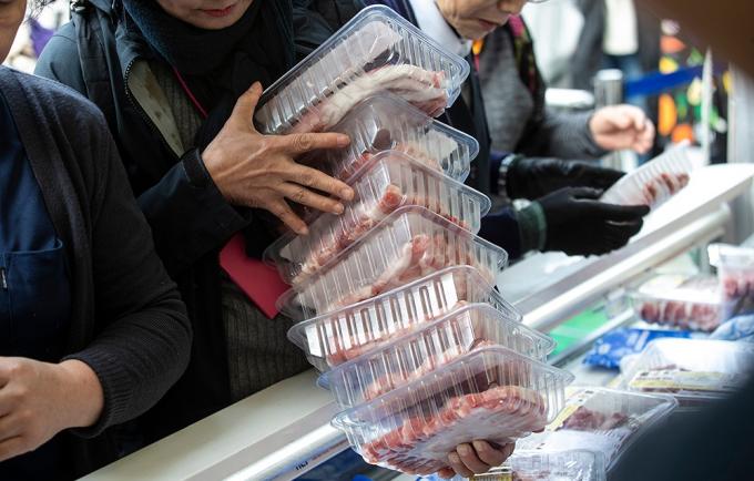31일 오전 서울 중구 일민미술관 앞에서 한돈 대국민 소비촉진 캠페인 일환으로 열린 믿고 먹을 수 있는 한돈 직거래장터를 찾은 시민들이 한돈을 구매하고 있다.