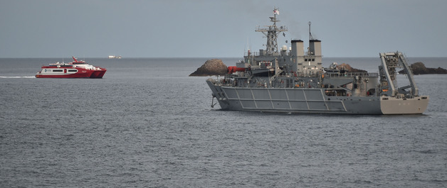 ▲ 3일 오전 경북 울릉군 독도 인근 사고 해역에서 해군 청해진함이 실종자를 찾기 위해 수색작업을 재개하고 있다. [뉴시스]