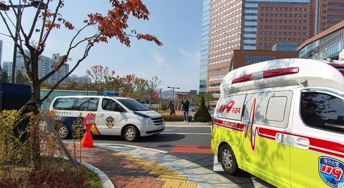 ▲ 3일 오후 12시8분께 대구 달서구 신당동 계명대 동산병원 장례식장에 독도 인근 해역 소방헬기 추락사고 희생자로 추정되는 시신 2구가 이송되고 있다. [뉴시스]