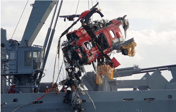 인양된 소방헬기 동체, 김포공항으로 옮겨 사고원인 규명