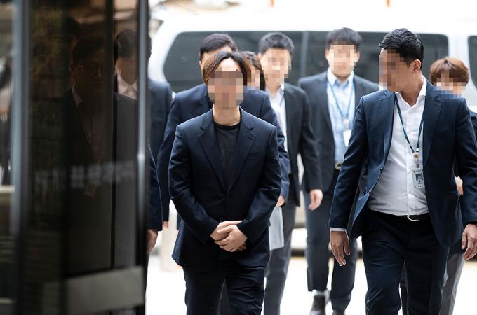 ▲ '프로듀스 X 101'의 생방송 투표를 조작한 혐의로 안준영 PD 등 제작진과 연예기획사 관계자 4명이 5일 오전 서울 서초구 서울중앙지방법원에서 열린 영장실질심사(구속 전 피의자심문)에 참석하고 있다. [정병혁 기자]