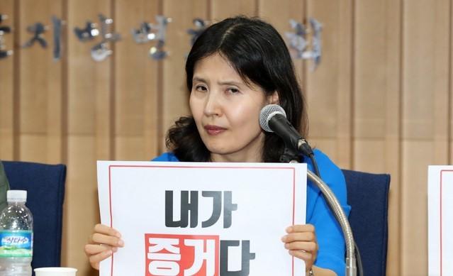 ▲ 고은(86) 시인이 자신의 성추행 의혹을 폭로한 최영미(58) 시인과 언론사를 상대로 낸 손해배상 청구소송 2심에서도 패소했다. 사진은 지난해 8월23일 오후 서울 서초구 서울지방변호사회관 정의실에서 열린 '시인 고은 손해배상 청구소송 공동대응을 위한 기자회견'에 참석해 피켓을 들고 있는 최영미 시인. [뉴시스]