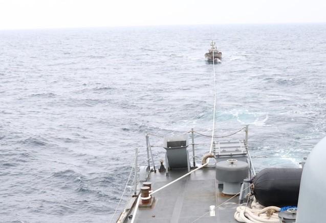 ▲ 지난 6월 11일 우리 해군함정이 북한 선박을 예인하는 모습. [합동참모본부 제공]