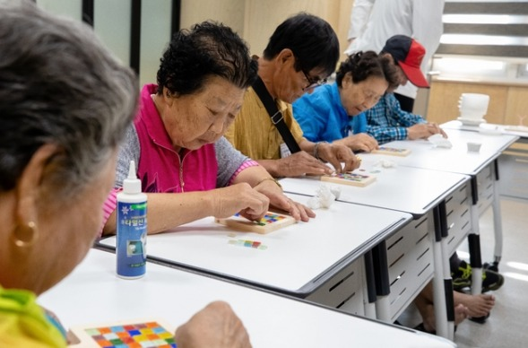 ▲ 경기 양평군 양평읍 '양평군 치매안심센터'에서 치매 예방 프로그램 '기억을 품은 학교'에 참여한 노인들이 퍼즐을 맞추고 있다. 치매 환자들은 건강한 생활습관을 통해 증세 악화를 막고 일부는 호전시킬 수 있다는 연구 결과가 나오고 있다. [뉴시스]
