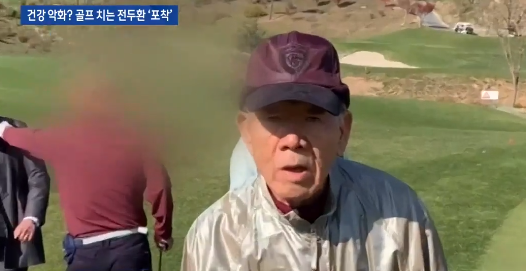 ▲ 전직 대통령 전두환 씨는 지난 7일 오전 강원도 홍천의 한 골프장에서 지인들과 라운딩을 즐기던 중 정의당 부대표인 임한솔 서대문구의원 측에 포착됐다. [JTBC 방송 캡처]