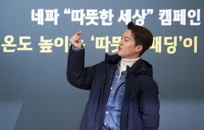배우 장기용이 12일 오전 서울 중구 웨스틴조선호텔 오키드룸에서 열린 네파 따뜻한 세상 캠페인 '따뜻한 패딩' 전달식에서 포즈를 취하고 있다.