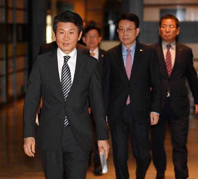 아시아나 인수 관련 기자회견장 입장하는 정몽규 회장