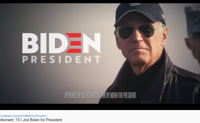 광고는 이어 "지금은 강력하고 한결같으며 안정적인 리더십이 필요한 순간"이라며 "우리는 전 세계적으로 신뢰받는 검증된 인물이 필요하다. 지금은 리더의 경험을 갖춘 대통령, 조 바이든을 위한 순간"이라고 강조했다.