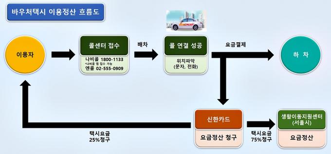 바우처택시는 미리 등록한 장애인 이용자가 나비콜·엔콜 등 콜센터를 통해 택시를 탄 후 복지카드로 요금을 결제하면 서울시가 콜택시 이용요금 일부를 지원해 주는 제도다.