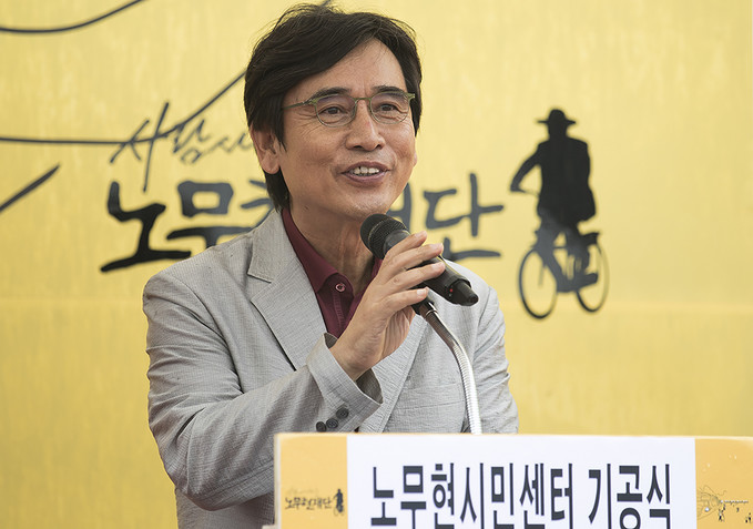 ▲ 유시민 노무현재단 이사장이 지난 9월 4일 오후 서울 종로구 원서동 노무현시민센터 건립부지에서 열린 노무현시민센터 기공식에서 감사인사를 전하고 있다. [정병혁 기자]